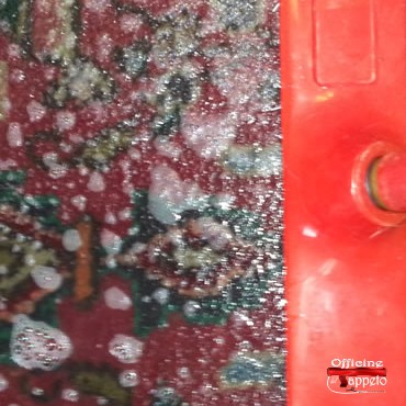Dalla foto si nota come dopo il lavaggio il tappeto riacquisisca i colori originari. Shahidi con trentacinque anni di esperienza nel campo di restauro e lavaggio , è in grado di risolvere ogni problema che riguarda i tappeti , .